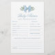 Carte de jeu de douche pour bébé Blue Bow avec conseils et prédictions. Cliquez sur le bouton personnaliser/éditer avec l'outil de conception pour personnaliser ce design avec les détails de votre événement.