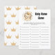 Whimsical Lion King Baby Name Shower Game Introduit notre enchanteur "Whimsical Lion King Baby Name Shower Game"! Préparez-vous à un voyage enchanteur où un petit lion, orné d'une couronne royale d'or, occupe le devant de la scène sur chaque carte. Au milieu d'un agencement de fleurs magistral dans des teintes douces et apaisantes, ce jeu apporte une touche d'élégance et d'humour à vos célébrations de baby shower. Laissez le charme du lion et les couleurs douces étinceler la créativité tandis que vous et vos invités vous lancez dans une aventure joyeuse pour trouver le nom parfait pour votre petit roi ou reine.