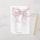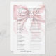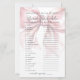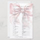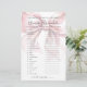 Ce Jeu de Fête des mariées style Coquette Fille et Mignonne - Mot Scramble. Ajoutez une activité ludique à votre douche nuptiale avec ce jeu classique où les invités essaient de démêler une liste de mots mariages et d'amour. C’est une façon ludique de divertir tout le monde en célébrant la future mariée. Le design comprend un arc rose vif surdimensionné, associé à l'expression "Elle attache le noeud !" dans une combinaison chic de script manuscrit noir et de polices serif classiques. La typographie améliore le charme de la coquette, mêlant écriture gracieuse et texte serif intemporel pour un look féminin et élégant. Entièrement personnalisable, vous pouvez modifier les mots brouillés, les couleurs de police et l'arrière - plan pour correspondre à votre thème de douche nuptiale. Cette activité ajoute une touche douce et engageante à toute célébration.