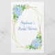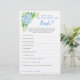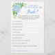 Cette carte de jeu de douche nuptiale est Comment connaissez-vous bien la mariée? Il a 10 questions auxquelles les joueurs peuvent répondre. Le design présente des fleurs hydrangées bleues aquarelles et un design géométrique en faux or sur le dos. Personnalisez le dos des cartes avec le nom de la mariée. Produits correspondants disponibles.