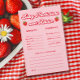 Vous recherchez des idées de jeux de baby shower ? Notre jeu de prédictions de Baby shower de fraises personnalisé est parfait pour un thème de baby shower sucré de baies! Il se marie merveilleusement avec vos idées de baby shower de fraise et de pièce centrale de fraise. Ce jeu ajoute du plaisir à votre thème de baby shower de fraise et est l'un des jeux de baby shower les plus uniques. Découvrez d'autres idées de baby shower à thème fraise et des idées de baby shower de baies pour compléter la journée !
