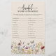 Jeu de course de mots nuptiale. - Ce jeu de douche nuptiale élégant et élégant présente de magnifiques fleurs sauvages d'aquarelle peints à la main, disposés comme un cadre charmant et élégant script de calligraphie. Le dos comprend un joli motif de coordination. (Réponse Key - lune de miel, réception, mariée, bouquet, première danse, invitation, mari, mariage, femme de ménage, femme de ménage, amour, douche nuptiale, sauver la date, fiancée, femme, mariage, baiser la mariée, épouse à être, cravate le noeud, bonheur mariage)