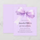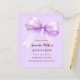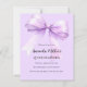 Un lavande douce, arrière - plan de couleur violet, décoré d'un grand arc. Personnalisez et ajoutez un nom et des détails du parti. 1 feuille = 1 invite imprimé bord à bord.