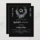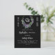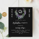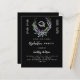 Arrière - plan noir. Une couronne fleurie faite de fleurs de lavande et de verdure d'eucalyptus aquarellée. Personnalisez et ajoutez un nom et des détails. Texte blanc. 1 feuille = 1 invite imprimé bord à bord.