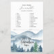 Demandez à vos invités de comprendre ces mots liés au bébé. L'aventure commence, thème du baby shower forestier. Couleur bleu vert aquarelle.