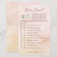 Ce jeu amusant de douche nuptiale va tester comment vos invités connaissent bien l'histoire de la mariée. Les clients doivent deviner si chaque article est un fait ou une fiction. Le jeu est entièrement personnalisable pour que vous puissiez entrer vos propres objets ou utiliser ceux que nous avons fournis. L'oeuvre couleur rose vif et pêche comprend une jolie aquarelle d'un anneau fiançailles équilibré dans les pages d'un livre ouvert formant une ombre en forme de coeur avec une rose rose rose à proximité. Parfait pour une douche de mariée à thème livre !