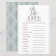 This retro and chic baby cowgirl's baby word scramble/baby shower game card features a white background with a cowboy on a horse. Personalize it for your needs. You can find matching products at my store.