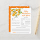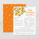 Cute little cutie thème baby shower prédictions bébé et carte de conseil avec illustrations d'orange sur une branche d'arbre. Un jeu parfait à jouer pendant la douche et sera certainement un grand gardien! La carte demande aux invités de prédire à quoi ressemblerait le bébé.