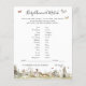 Les teintes terreuses et organiques sont toujours un choix idéal pour les baby showers. Une palette de brun, vert tendre et écru pour une fête boisée ne déçoit pas. Les teintes muettes gardent l'aspect minimal et au naturel - parfait pour les fêtes de saumons, de bois ou de jardin de printemps. Des matériaux naturels comme le bois, la verdure et la pierre rendent ce mélange de couleurs facile à intégrer dans un événement magnifique. Promenade dans les bois - collection d'histoires estivales sur les animaux de forêt mignons avec les fleurs sauvages, la verdure, les arbres. Bien sûr, il n'est pas nécessaire de jouer à des jeux au baby shower, mais considérez ceci : vous allez avoir un groupe de tous les âges, et la plupart des invités n'ont probablement jamais rencontré l'un l'autre avant la fête. Mélanger dans quelques-uns de ces jeux de baby shower classiques est une façon parfaite de briser la glace. Nos cartes de jeu double face sont un ajout élégant et pratique à toute douche. Ces cartes professionnelles sont rapidement personnalisables. Ajoutez votre libellé personnalisé à cette conception à l'aide des cases "Modifier ce modèle de conception" situées à droite de l'élément, ou cliquez sur le bouton bleu "Customiser" pour arranger le texte, modifier les polices et les couleurs et ajouter des informations ou des images supplémentaires à cette conception. Cliquez sur "Customiser plus loin" pour ouvrir les options d'édition complètes. Si vous avez besoin d'éléments de coordination (cartes de remerciements, etc.), veuillez me contacter pour une commande personnalisée. ****Pour les demandes personnalisées avec lesquelles vous avez besoin de mon aide, ne placez pas cette marchandise dans votre panier. Au lieu de cela, envoyez-moi votre demande par courriel à lauralise@iyhtvdesigns.com Un lien vers votre marchandise vous sera envoyé par courriel une fois que l'article sera disponible. Vous pouvez utiliser ce lien pour passer votre commande. Veuillez compter jusqu'à 48 heures.