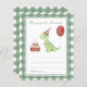 Fête anniversaire de enfant de l'aquarelle. Aquarelle Dino en casquette d'anniversaire, gâteau aux bougies, ballon rouge. Arrière - plan de cage verte.
