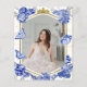 Découvrez l'essence de votre fête de Quinceañera avec nos invitations photo sur le thème de la tiare et des papillons. Créez des souvenirs magiques avec des motifs floraux bleu roi aquarelle entrelacés de confettis pétillants, tous logés dans un cadre géométrique moderne. Ces invitations enchanteurs donneront le ton pour une célébration inoubliable.