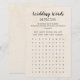 Ce quiz de table de recherche de mots mariages sera amusant avec les invités le jour du mariage. il est prêt à être personnalisé! Cliquez sur "Personnaliser ce modèle" pour obtenir des personnalisations plus avancées.