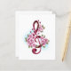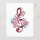 Pink treble clef with delicate, detailed pink Japanese cherry blossoms against white background painted over with light blue paint Blooming pink sakura.