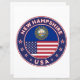 Insigne du New Hampshire avec drapeau du New Hampshire et drapeau des couleurs des USA, forme arrondie. Emblème du New Hampshire. Sceau du New Hampshire. Collection USA Etats.