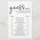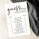 Épicez votre douche nuptiale avec ce jeu chic et minimaliste Guess Who ! Apportez une touche moderne au jeu classique avec ce design noir et blanc simple et élégant. Ce jeu moderne Guess Who est l'activité parfaite pour amener la future mariée et ses invités à se mêler et à rire. Avec son style épuré et minimaliste, il ajoute une touche design à toute célébration de douche nuptiale. Customisez les cartes de jeu avec des questions amusantes sur le couple pour déclencher la conversation et le rire.