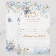 Célébrez l'arrivée prochaine d'un petit prince avec notre "Oh Deer Winter Baby Boy Shower Invitation." Cette invitation charmante et fantaisiste saisit l'essence d'un pays merveilleux d'hiver avec ses tons sereins de bleu et de délicieux motifs de cerfs. À l'automne des premiers flocons de neige, notre invitation ouvre la voie à un rassemblement émouvant. Un arrière - plan bleu glacé et doux évoque l'ambiance paisible d'une journée d'hiver, tandis que de délicats motifs floraux ajoutent une touche de beauté naturelle à cette scène hivernale. Le doux motif du cerf, représenté dans des silhouettes gracieuses, exprime la douceur et l'innocence de l'arrivée imminente. Le texte est élégamment présenté dans une police élégante mais facile à lire, ajoutant une touche de sophistication à ce charmant design à thème hivernal. Cette invitation promet un rassemblement mémorable et réconfortant qui saisit l'essence de la saison et la joie d'accueillir un bébé précieux dans le monde.