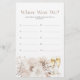 (Choisissez la finition papier MATT - PAS semi-brillant - à écrire.) Ajoutez une activité amusante et mémorable à votre douche nuptiale avec le jeu "Où étions-nous ?", où les invités devinent l'emplacement des photos montrant la mariée et le marié. Ce jeu, orné de délicats flancs d'aquarelle et d'élégantes perles, apporte le rire et la joie à votre célébration, complétant parfaitement la collection Elegant Pearls and Prosecco Fête des mariées Collection.