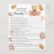 Célébrez avec cette soirée baby shower à thème d'ours en peluche! Aquarelle mignon ours en peluche avec un citrouille d'automne dans ses pattes est assis sur le feuillage d'automne. Au verso de la carte se trouvent les feuilles d'automne. Éléments correspondants disponibles.