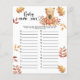 Célébrez avec cette soirée baby shower à thème d'ours en peluche! Aquarelle mignon ours en peluche avec un citrouille d'automne dans ses pattes est assis sur le feuillage d'automne. Au verso de la carte se trouvent les feuilles d'automne.