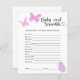Baisers violets lilas et rose papillon et baby shower de voeux pour bébé. Cartes de baby shower papillon pour une fille. Éléments correspondants disponibles. Réponses : CRAVINGS, PLEIN, PACIFICATEUR, BOUTEILLE, LUMIÈRE NOCTURNE, LULLABY, STROLLER, ÉPIDURAL, BRÛLE, CHAISE HAUTE, SAC DE DIAPER, ÉPONSE
