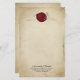 Ce papier fixe personnalisé présente un thème médiéval historique. L'arrière - plan est un motif de papier parchemin défraîchi qui ressemble à un rouleau médiéval. Un cadre doré orné borde le papier. Un sceau de cire rouge est placé en haut avec un échantillon initial. Un exemple de nom et d'adresse est imprimé près du bas. Vous pouvez personnaliser le texte fixe pour inclure votre propre texte initial et personnalisé.