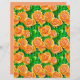 Papier dans un motif de roses d'aquarelle, dans les tons pêche et orange corail doux, contre un arrière - plan de feuilles verts