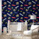 Papier peint amusant pour agents immobiliers. Cette décoration murale à motifs amusants est à vendre, vendue et pour laisser des enseignes, des clés et des maisons.