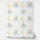 Papier Peint Aquarelle Bébé Eléphant Nuages Étoiles Lune endorm