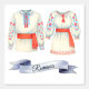 Célébrez le patrimoine roumain avec ce charmant papier peint aquarelle avec costumes folkloriques traditionnels (c'est-à-dire cămașă) pour hommes et femmes, ornés de cils rouges et de broderies florales. L'élégant ruban "Roumanie" ajoute une touche nostalgique et patriotique. Parfait pour les espaces culturels, les crèches à thème ethnique ou la décoration patrimoniale.