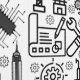 Papier Peint Architectural Blueprint Engineer noir et blanc