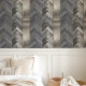 Papier Peint Argent métallique et Gris Chevron Herringbone