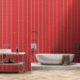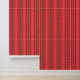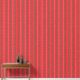 Ce design présente un motif extensible de bandes verticales rouges avec des motifs floraux blancs complexes à l'intérieur. Les bandes sont séparées par de fines lignes vertes, ce qui ajoute du contraste au design général.