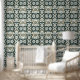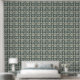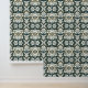 Cette oeuvre présente un motif complexe inspiré du design Art Déco, caractérisé par des lignes fluides et symétriques et des formes géométriques. Le design est rendu dans une palette raffinée d'accents turquoises, crème et or subtil, créant un look sophistiqué et élégant. Les motifs répétitifs forment un motif complexe et entrelacé qui respire à la fois l'harmonie et le mouvement. La combinaison de courbes et d'angles pointus ajoute une qualité dynamique au design, tandis que le jeu de couleurs maintient un sentiment d'intemporalité et de style classique.