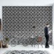 Motif entrelacé Déco noir et blanc avec une structure géométrique audacieuse. Ce design moderne allie symétrie et contraste, créant un accent sophistiqué idéal pour les intérieurs contemporains ou minimalistes recherchant une touche Déco raffinée.
