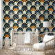 Transformez votre espace avec **Celestarch Glow**, un papier peint luxueux inspiré de l'Art Déco, mettant en vedette des arches radieuses, des phases lunaires célestes et des accents dorés scintillants. Ce design allie géométrie moderne et éléments cosmiques oniriques pour créer une atmosphère sophistiquée et immersive.