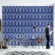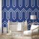 Papier Peint Art Déco Motif 05 - Blanc sur bleu prussien
