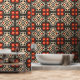 Ce papier peint peel and stick présente un design captivant avec des couleurs audacieuses et des motifs complexes. Les couleurs dominantes sont le noir, le rouge, l'orange et le blanc. Les fleurs rouges ont des centres orange, créant un contraste vibrant contre l'arrière - plan sombre. Le style graphique penche vers l'art populaire. Il se sent artisanal, comme si quelqu'un l'avait peint directement sur le mur. Les formes organiques et les contours imparfaits lui confèrent une ambiance authentique et libre. Le motif répétitif comprend des motifs floraux stylisés et des éléments en forme de larme. Les fleurs sont interconnectées par des lignes noires délicates, formant un réseau complexe. Appliqué à un mur, ce papier peint transforme l'espace. Il est attrayant, chaleureux et ajoute une touche de charme bohème.