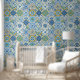 Papier Peint Azulejo tiles in blue and yellow