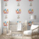 Papier peint de chambre de bébé doux fait dans un arrière - plan blanc, avec de belles oeuvres d'un lapin lapin farci flottant sur un bouquet de ballons colorés. Idéal pour une utilisation comme bordure ou mur complet.