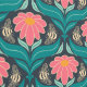 Papier Peint Bees Flower Rose rouge sur bleu foncé