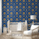 Papier Peint Belge Damask Gold sur Blue Designer