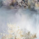 Stages de bois de l'île Dreamy de magnifiques bouleaux blancs dans l'aquarelle de la brume matinale par ©WhimsicalArtwork™