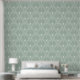 Papier Peint Blanc sur sauge vert art déco motif