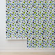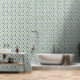 formes atomiques amusantes et funky en bleu, vert et noir sur un arrière - plan bleu tacheté