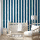 Ce papier peint rayé bleu marine et blanc moderne ajoute de la cachette à toute chambre.