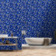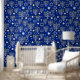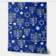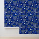 Blue Happy Hanoukka Star Of David Menorah Modern Motif Peel and Stick Wallpaper présente un arrière - plan bleu étincelant avec menorah et étoile de David overlay. Décor maison parfait pour Hanoukka. Créé par Evco Holidays www.zazzle.com/store/evcostudio