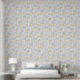 Papier Peint Blue Yellow Mid-Century Abstract Cat Pattern