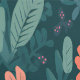 Papier Peint Boho Retro Orange Green Florals Fleurs