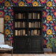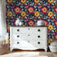 Papier Peint Bold Red & Gold Blooms sur Arrière - plan Navy