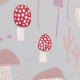Champignons amusants, tabouret et champignons design en crème, rose roux avec des touches de rouge sur un arrière - plan gris doux. Art original de Nic Squirrell.